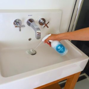 • Robinetterie et Inox : Pulvérisez le détartrant anti-calcaire sur vos robinets, poignées et accessoires en inox, laissez agir, puis essuyez avec un chiffon doux pour redonner éclat et brillance sans rayures ni résidus.
